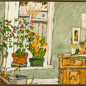 signed and dated, ‘CLAUDE A. / SIMARD / ‘92’ (lower right); titled, dated and signed, ‘STUDIO / INTERIOR / SOUTH WALL / 1992 / CLAUDE A. / SIMARD (verso); stamped in red ink with artist’s studio stamp and dated, ‘92’ (verso, on canvas fold)Provenance
