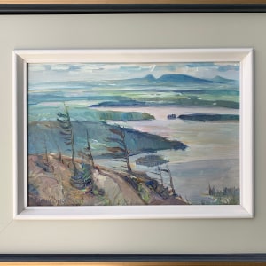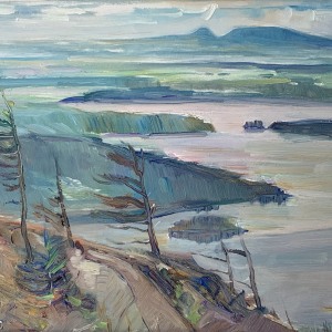 Painted overlooking Lake Memphremagog, the composition is a poem in paint about atmosphere, light and the serenity of contemplation