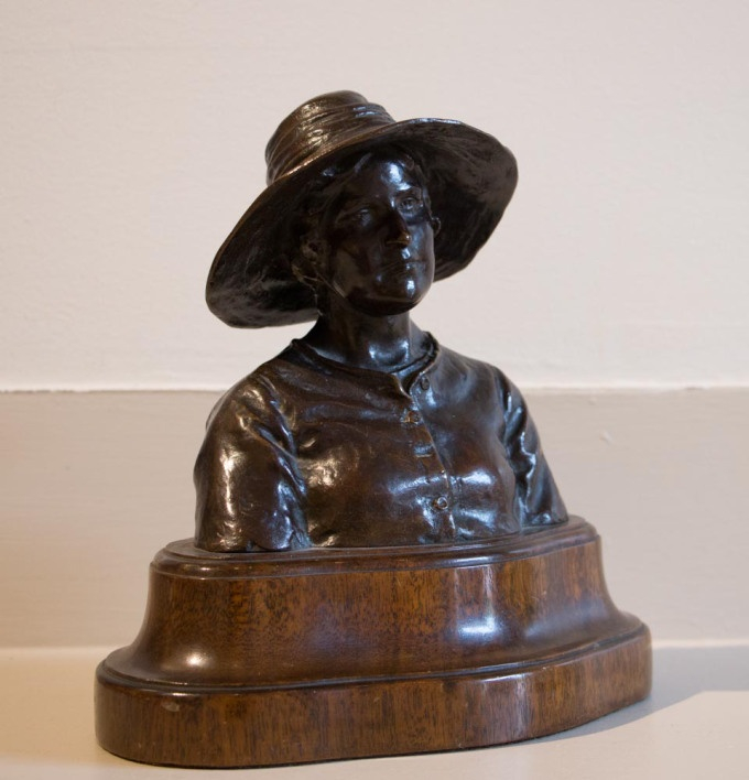 'This small bust, presented at the exhibition of the Ecole des beaux arts de Montréal in 1929, was erroneously entitled Bust, Maria Chapdelaine. Nevertheless, this representation of Young Canadian Girl does pick up to a certain extent the theme of Maria Chapdeleine …. In the bust of Canadian Girl, the artist has painstakingly modelled the weather-worn face of a rather young woman. Her braided hair falls down her back. Her large straw hat, decorated with a ribbon ending in a bow at the back, is an attribute that clearly places her in the country. It is one of the first times in his sculptural production that the artist has truly created a type of allegorical figure. This work, symbolising country values, goes beyond the narrative aspects of some of his other sculptures such as Le Vieux Pionnier canadien (The Old Canadian Pioneer) and La compagne du vieux pionnier canadien (The Companion of the Old Canadian Pioneer)." (Pierre L'Allier, Suzor-Coté: L'Œuvre sculpté, Musée du Québec, 1991, p. 57' (Translated from original French version by Pierre L'Allier, Suzor-Coté: L'Œuvre sculpté, Musée du Québec, 1991, p. 57).