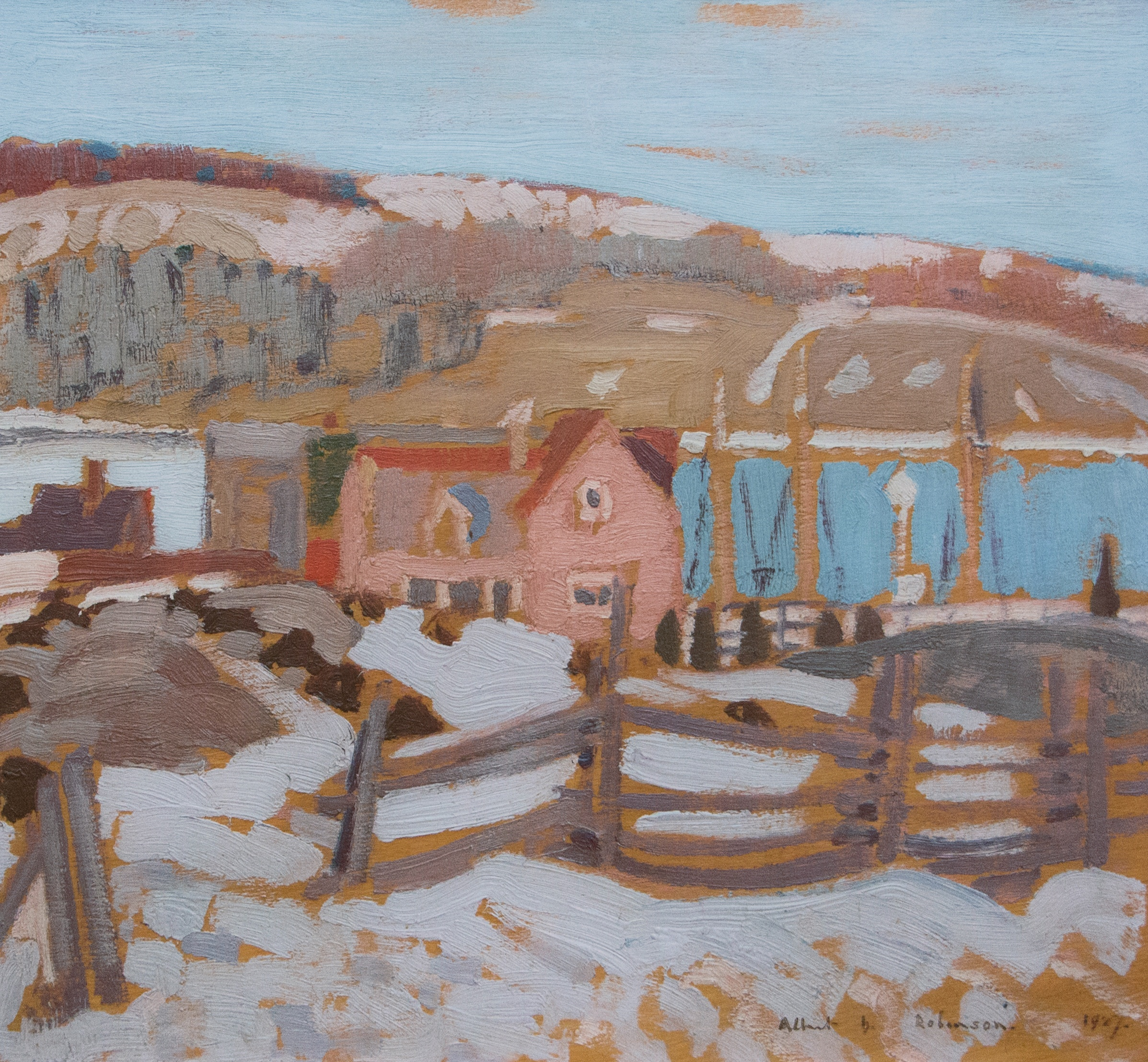 In the forward to the Walter Klinkhoff Gallery's 1962 Randolph Hewton retrospective exhibition catalogue, A.Y. Jackson recounted how he had been with Hewton when they receiving the news that Robinson was ill. In the spring of 1933, Jackson and Hewton had ventured to St. Urbain, where Robinson was to join them. "A letter informed us he was ill," Jackson wrote, "indeed so ill that he never went sketching again (A.Y. Jackson, forward to Randloph Hewton Retrospective Exhibition, Walter Klinkhoff Gallery, 1962) .