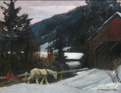 A painting the important quality of our 'Approaching a Covered Bridge, 1937, undoubtedly composed on a trip to the Gatineau, represents an astute purchasing decision in today's art market. Precious little is dedicated to the all too brief career of the fine Ottawa based artist Frank Hennessey, R.C.A. (1894-1941).