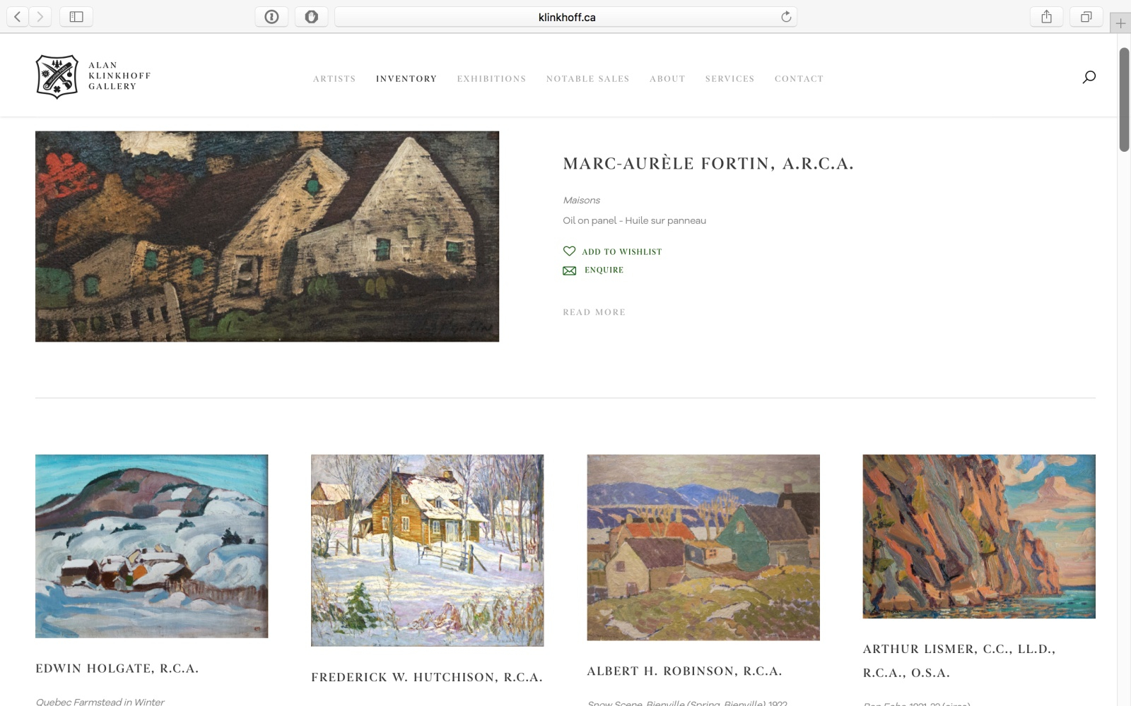 Alan Klinkhoff Gallery is proud to introduce a new version of our industry-leading website Klinkhoff.ca. This state of the art web platform was developed to provide our growing online audience with a more convenient buying experience while also allowing us to better share our family's 70-year tradition of expertise in Canadian art.