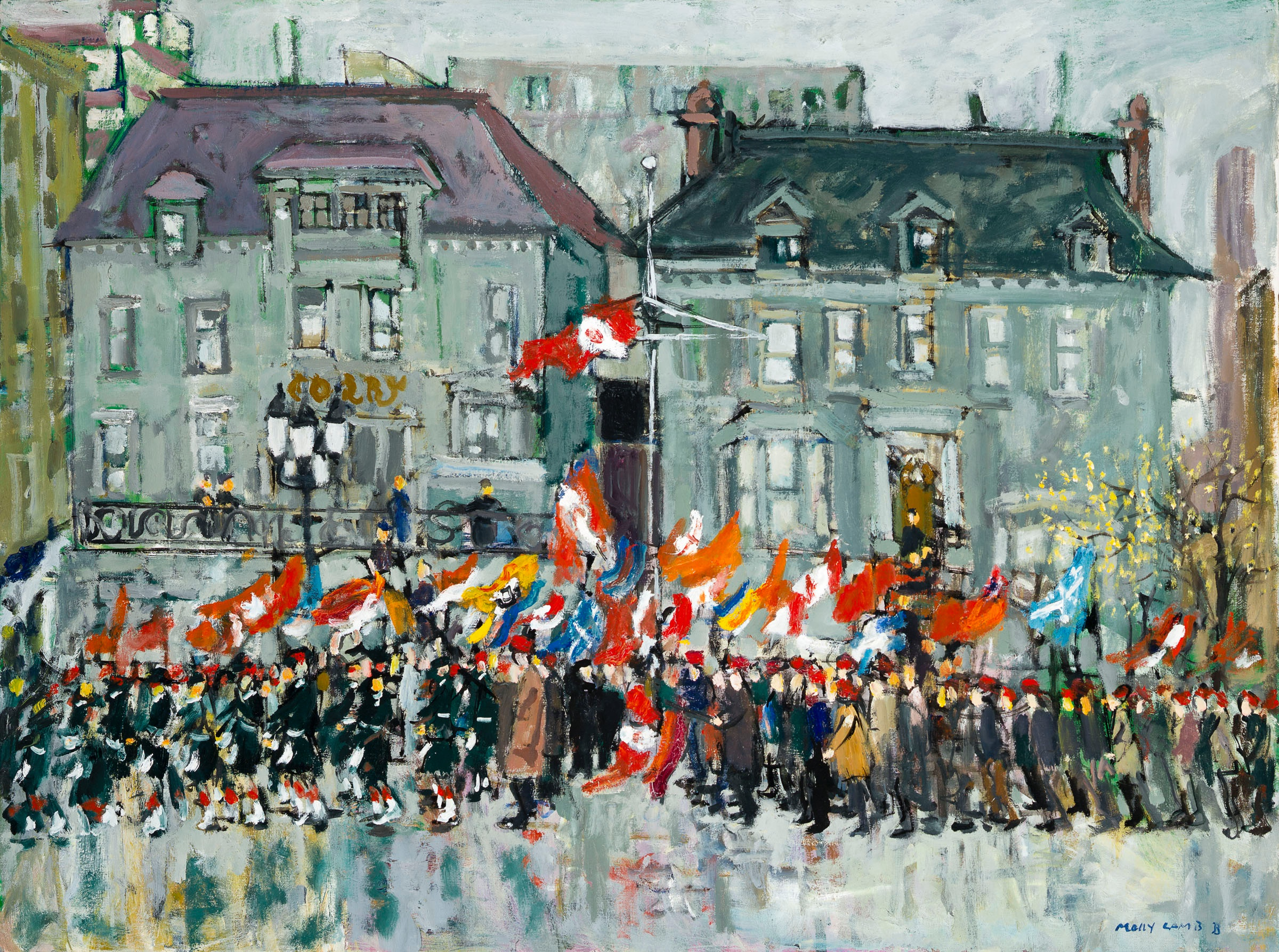 Molly Lamb Bobak (1920-2014), Remembrance Day (1), Montreal, 1983. Oil on canvas. 30 x 40 ins. This painting was conceived on the front steps of Galerie Walter Klinkhoff and sold by the gallery.