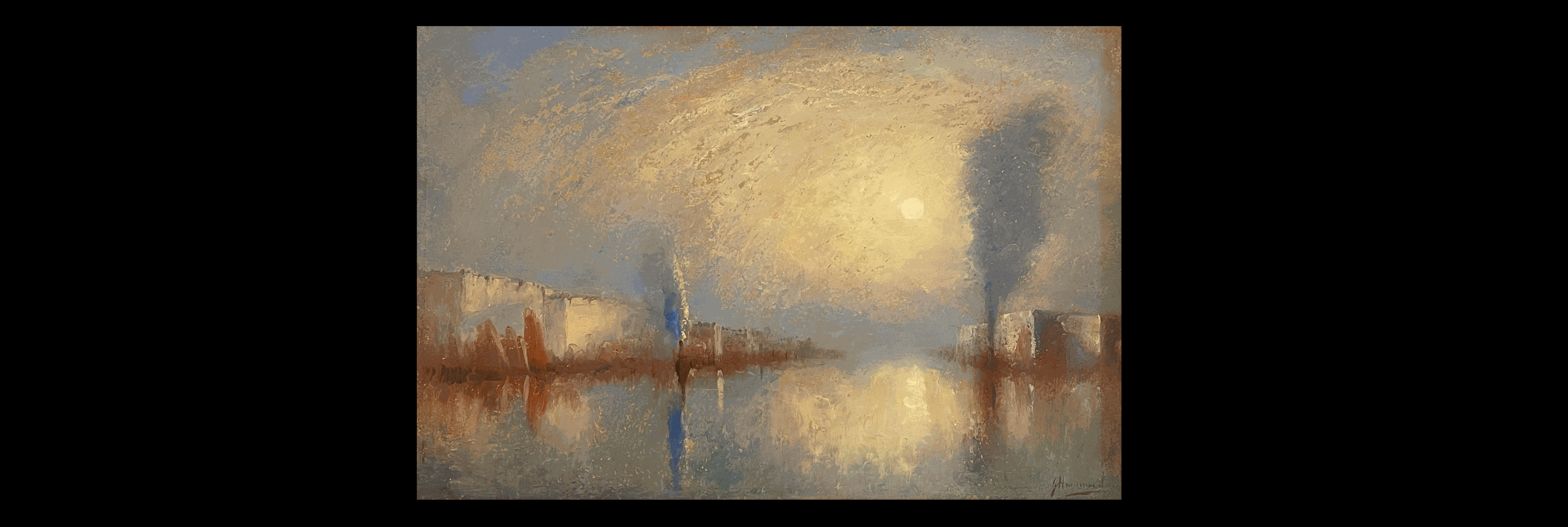 Born in Montreal, Hammond was the son of a stone mason and as a child he assisted his father at a marble mill. While he later told his biographer that he had decided to become an artist at age eleven, as a young man he pursued adventure.[1] He joined the army at twenty-three, and he was involved in the defense of Canada during the Fenian Raids in 1866. Later that year, he and his brother travelled to Britain.[2] At the time, he had not begun working as an artist, but during his stay he visited the National Gallery, where he particularly admired J.M.W. Turner’s art. Considered one of the greatest landscape painters in British history, he was known for brilliant evocations of light and atmosphere, and years later his oeuvre became an important touchstone for Hammond. At the time, however, he and his brother quickly moved on, travelling to New Zealand and joining the gold rush movement there. He did not return to Canada until 1868.