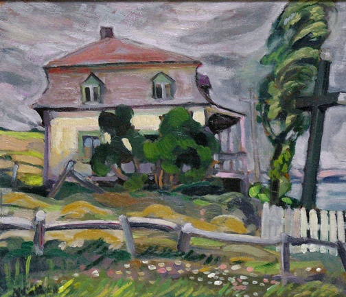 Wayside Cross, Cap-à-l'Aigle (oil on panel, 12 x 14) was exhibited in Galerie Walter Klinkhoff's Nora Collyer exhibition and sale in 1964.