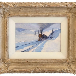 Clarence A. Gagnon"Etude" The Train, 1910 (circa)1881-1942Oil on panel5 x 7 inCopyright Alan Klinkhoff Gallery