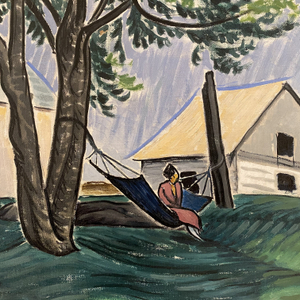 signed, ‘Lyman’ (lower left); signed, titled and inscribed by the artist, ‘JOHN LYMAN / “THE HAMMOCK UNDER THE TREE” / For Mr. Van Valkenburg CCRU’ (verso)Provenance