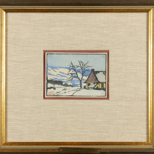 stamped in red ink, 'Atelier Gagnon' (lower left); titled by Galerie Walter Klinkhoff on inventory label, ‘Maison canadienne, Baie St-Paul’’ and numbered ‘1506’ (verso, lower centre)Provenance