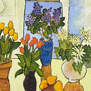 Claude A. SimardRed Tulips, 19991943-2014Acrylic and mixed media on canvas28 3/8 x 34 1/4 in