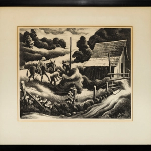 Referred to as a Regionalist, Thomas Hart Benton believed that the subjects of American artists should come from the nation’s heartland. After initially absorbing the lessons of Modernism and embracing an abstract, vivid style, Benton turned in the 1920s to developing what he considered an “authentic American art,” an art that was socially responsible and never aesthetically hermetic.