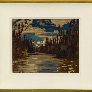 It was Lawren Harris who initiated the painting expeditions to Algoma, north of Sault Ste. Marie, when he first travelled there with Dr. James MacCallum, co-financier of the Studio Building, in May 1918. Captivated by the landscape, he returned in September with Dr. MacCallum and fellow artists J.E.H. MacDonald and Frank Johnston. In a refitted work gang boxcar, the group travelled north from the Sault on the Algoma Central Railway to mile 131 at the Agawa Canyon where the car was left on a siding, allowing them to explore and paint. The car was then picked up by a passing train travelling south to allow them to stop at sidings at their request. In late April 1919 the three artists held an exhibition of their Algoma paintings at the Art Museum of Toronto where the paintings were arranged in the sequence of their travels south from Canyon to Hubert, Batchawana, the Montreal River and Mitchell Lake.