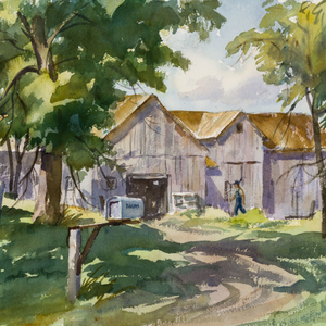 Henry J. SimpkinsSummer on the Farm - Ferme en été1906-1995Watercolour - Aquarelle14 1/8 x 20 1/8 inThis artwork is presently on view at our Montreal gallery