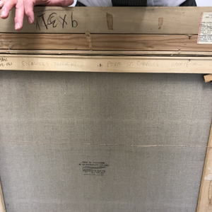 signed and dated, ‘JOHN / LITTLE’ (lower right); signed, titled and dated by the artist, ‘ESCALIERS TOURNENT / POINTE ST. CHARLES / MONTREAL / JOHN LITTLE/ '69’ (verso, upper horizontal stretcher)Provenance