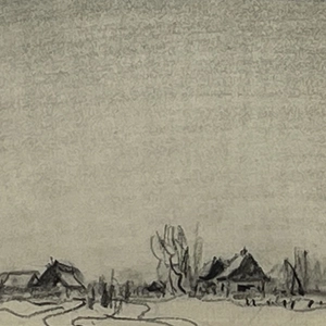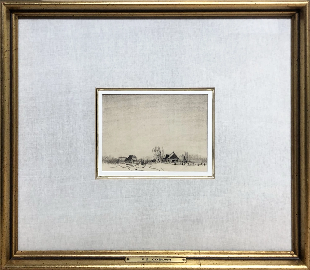 This exquisite drawing shows the formidable skill of Frederick Simpson Coburn. With an economy of lines the artist describes an Eastern Townships homestead in winter where, in the distance, immediately in the centre, one can visualize a pair of horses pulling a sleigh.1of 6
