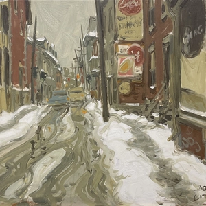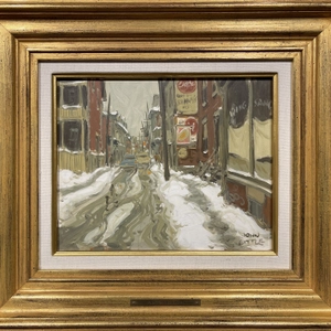 John LittleRue la Gauchetière at Rue d'Hôtel de Ville, Montréal, 1963 (circa)1928-2024Oil on panel8 x 10 in