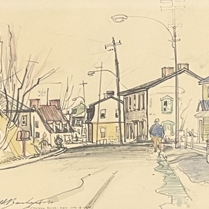 Private collection, Toronto.Our drawing demonstrates Bouchard’s important level of accomplishment as a draughtsman. Lorne Bouchard was an outstanding artist and one who exhibited successfully at our original family art gallery, Walter Klinkhoff Gallery, for 20 years. Originally, his artistic influence was Clarence Gagnon, who did respond to Lorne with encouragement in his earliest years. The subject matter here is of a historic village, Chateau Richer, which has its roots going back 350 years. It is located east of Quebec City along the St Lawrence River, today perhaps 40 minutes by car from Gagnon’s Baie St Paul. This region beyond Quebec City was among Lorne’s favourite painting places.24of 24