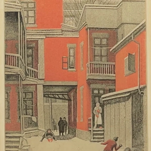 Frederick B. TaylorIn a Courtyard Between Clark & St. Lawrence Blvd, 1948 (March 3)1906-1987Aquatint6 x 5 3/4 in