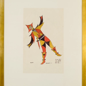 signed, ‘PELLAN’ (lower left); titled, ‘SOLDAT -C-’ (lower centre); inscribed, ‘ALFRED PELLAN/ 649, Boul. des MILLE ILES./ AUTEUIL, LAVAL, QUÉ./ CANADA’ (verso, upper centre); inscribed, ‘LA NUIT DES ROIS / DE / SHAKESPEARE’ (verso, centre); titled and inscribed ‘SOLDAT -C- / 18 ¼ x 11 ¼ ‘ (verso centre); inscribed, ‘COLLECTION = EDOUARD BOURQUE / CHEMIN D’AMOUR, / LUCERNE, QUÉ’ (verso, lower centre)Provenance